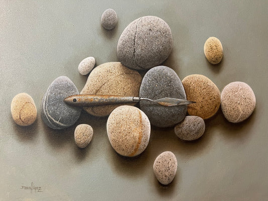 His artworks take the image of boulders, which in western culture has been seen as an obstacle. In his conceptual works he subverts this meaning and sees stones as a possibility. He is interested in exploring the message that these stones have to share by showing realities, at times contrarian, that are not spoken about enough. This is why he includes foreign objects in his bodegones / still life. With an accessible price point, this is a collection you do not want to miss.